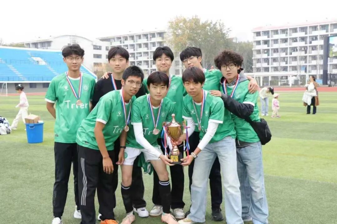 每一位驰骋赛场的队员,皆是赛场上最耀眼的星。他们用拼搏书写荣耀,用坚持诠释热爱,是中德特里尔学院当之无愧的骄傲;呐喊助威的老师与同学,掌声与欢呼化作球队奋勇向前的最强后盾,成为赛场上最动人的旋律。 季军并非终点,而是全新起点!中德特里尔学院足球队的绿茵故事,未完待续!未来,球队将带着这份荣耀与热爱继续驰骋赛场、再创佳绩,让特里尔的旗帜在绿茵场上高高飘扬!
