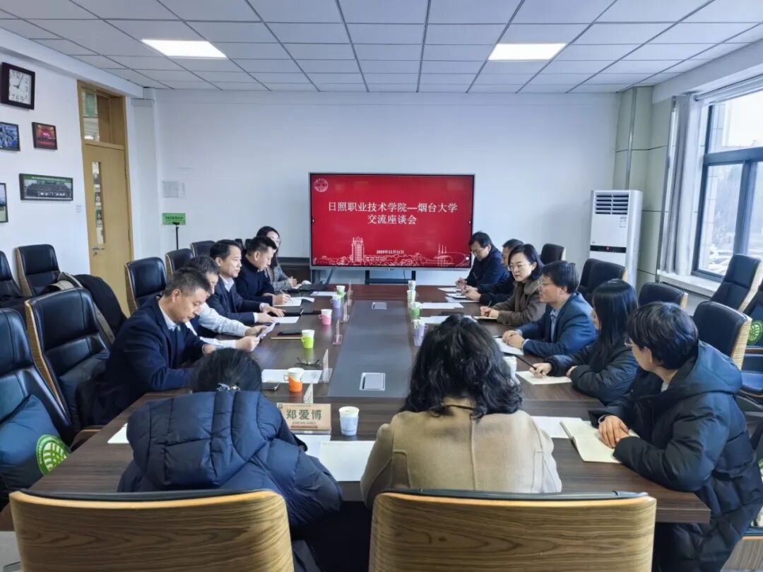12月11日上午,日照职业技术学院党委委员、副院长徐锡权一行来我院调研交流。烟台大学党委常委、统战部部长、台港澳事务办公室主任毕朝辉出席并致辞,国际合作交流处处长吴宏军主持,特里尔可持续发展技术学院党总支书记张西俊、副院长王其光等人参加座谈。