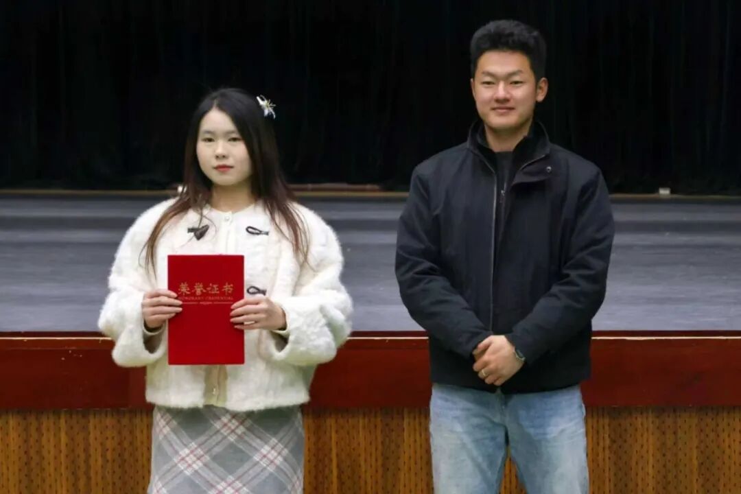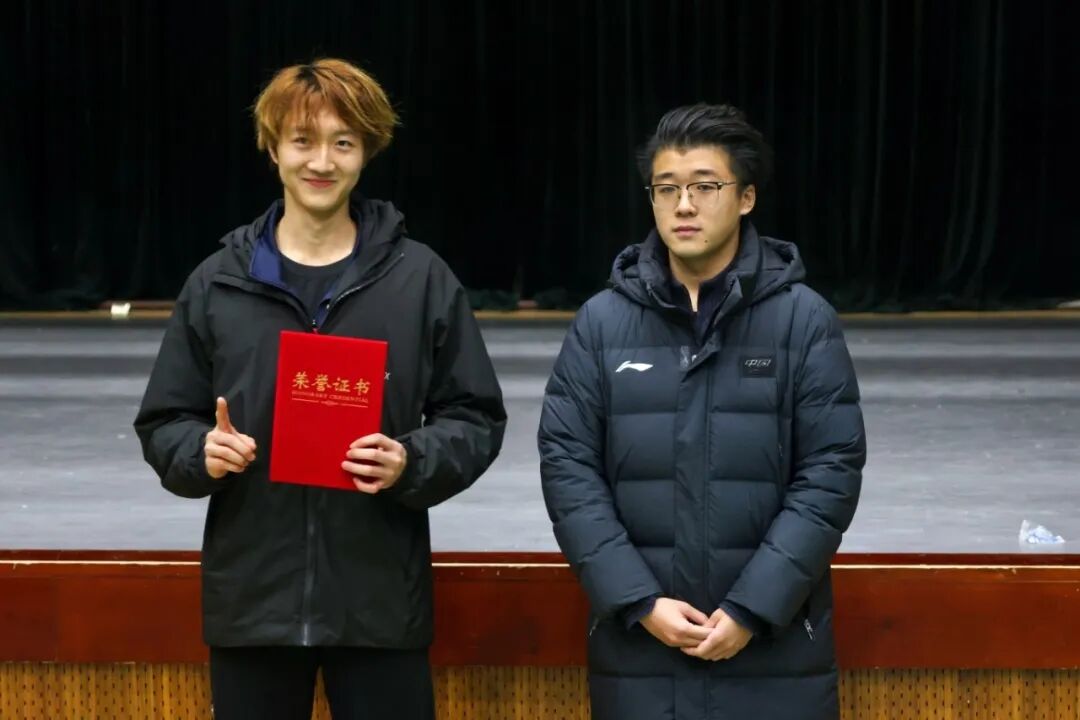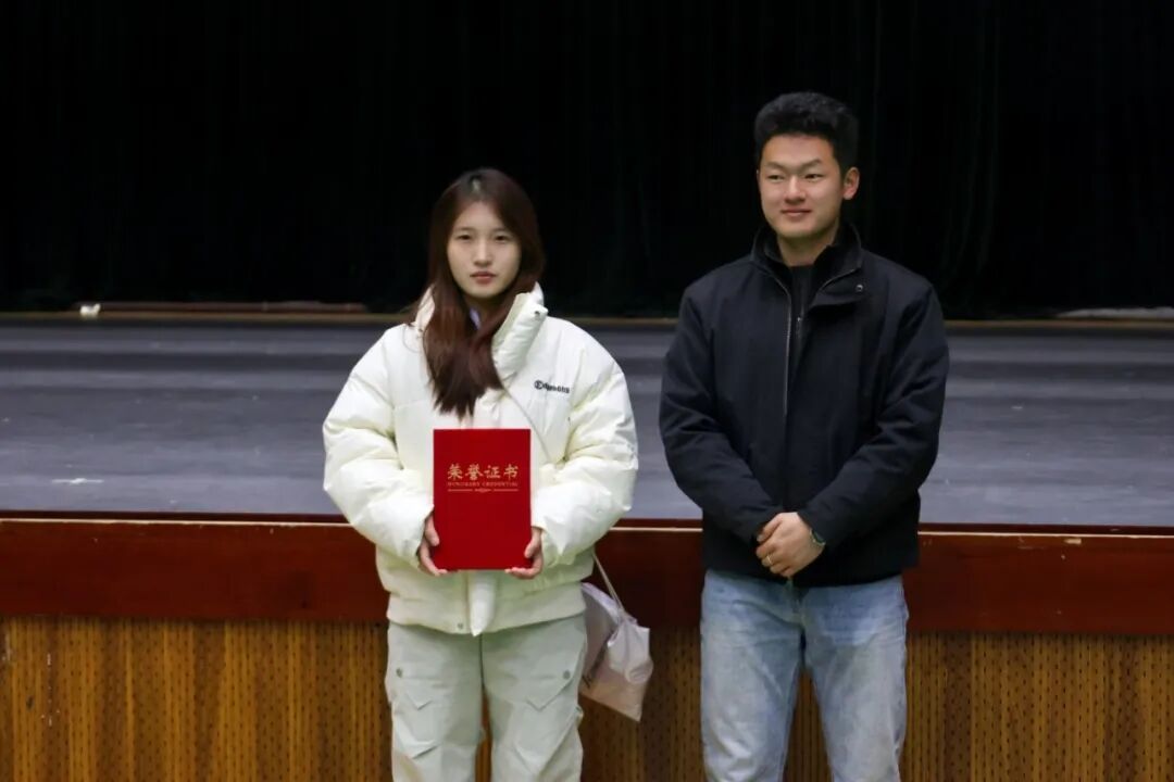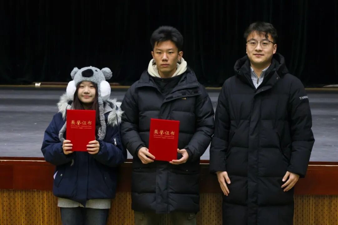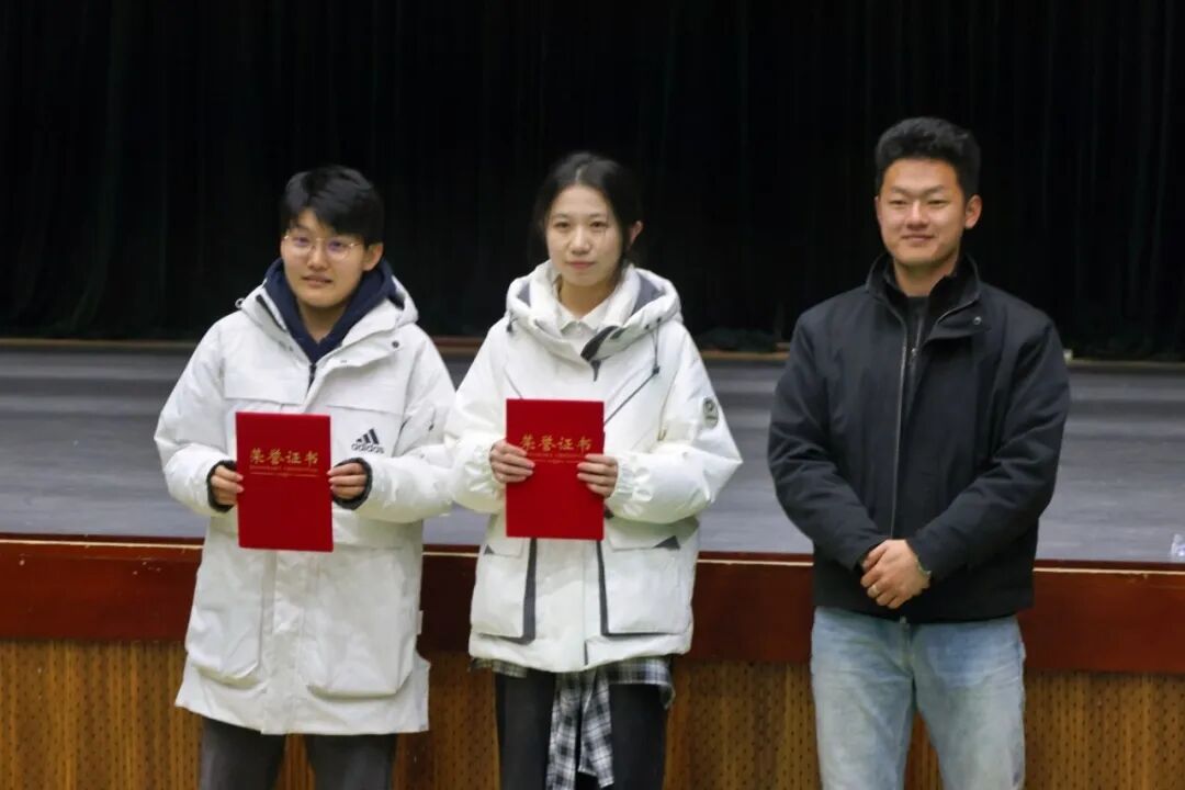 颁奖环节中,校学生会主席团成员王一民、校学生会办公室主任尹长浩、校学生会文体部部长黄帅朋、校羽毛球协会副会长王佳慧、特里尔可持续发展技术学院学生会主席团成员庄梓翌,分别为混双、男双、女双、男单、女单获奖选手颁奖