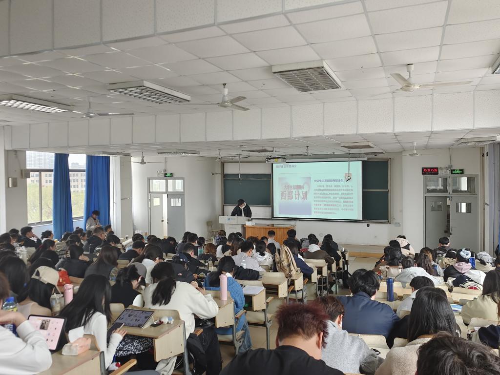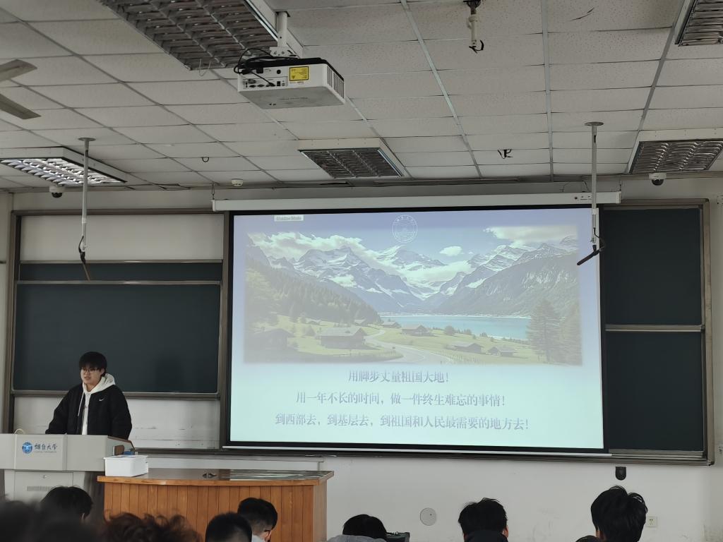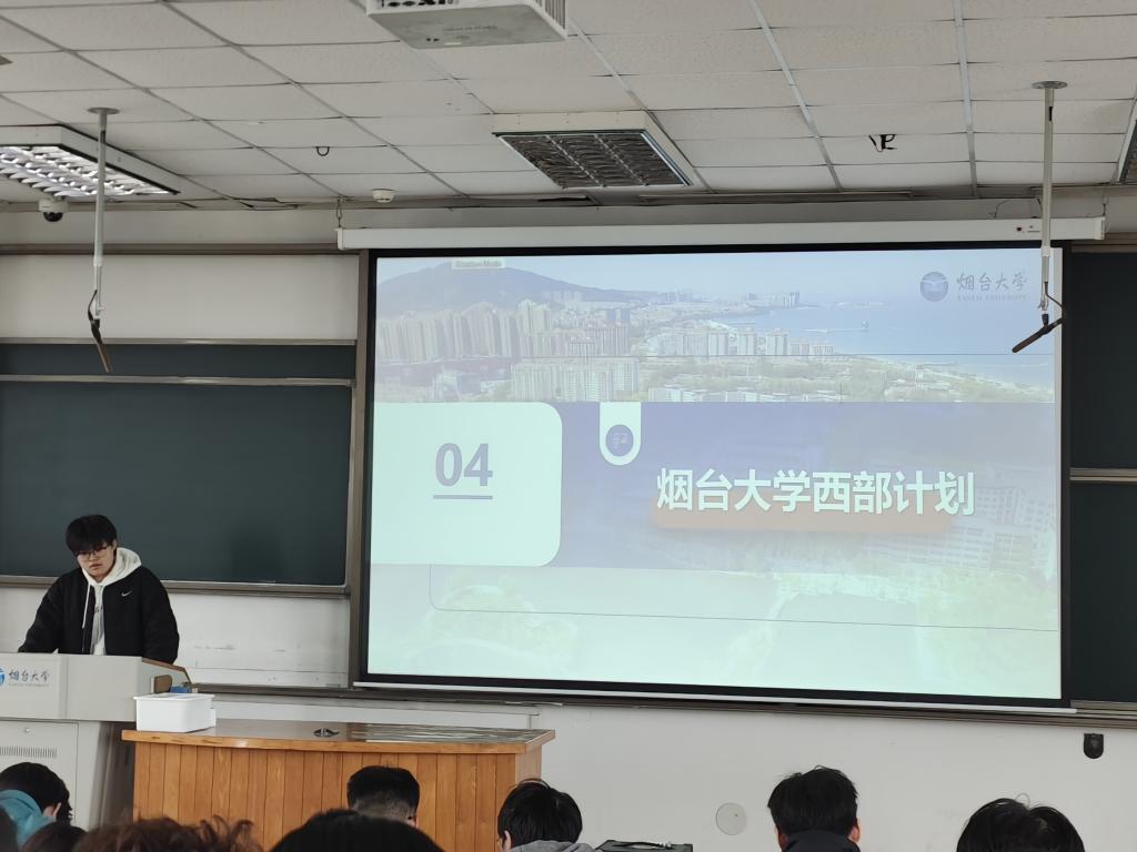 2025年4月18日下午,烟台大学西部计划宣讲团对中德特里尔学院2022级全体同学进行宣讲。