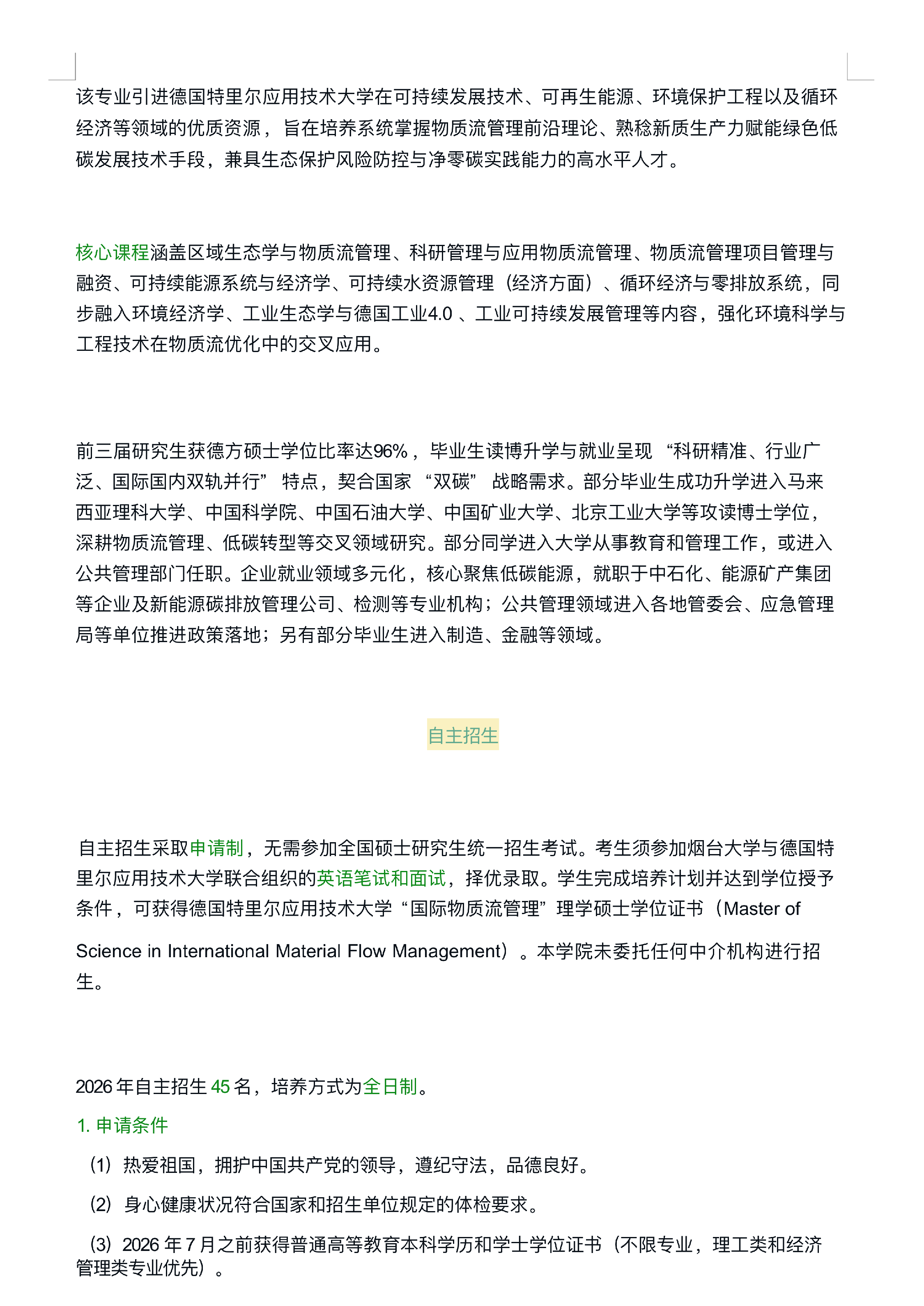 烟台大学2026年中外合作办学 “国际物质流管理”理学硕士专业自主招生简介